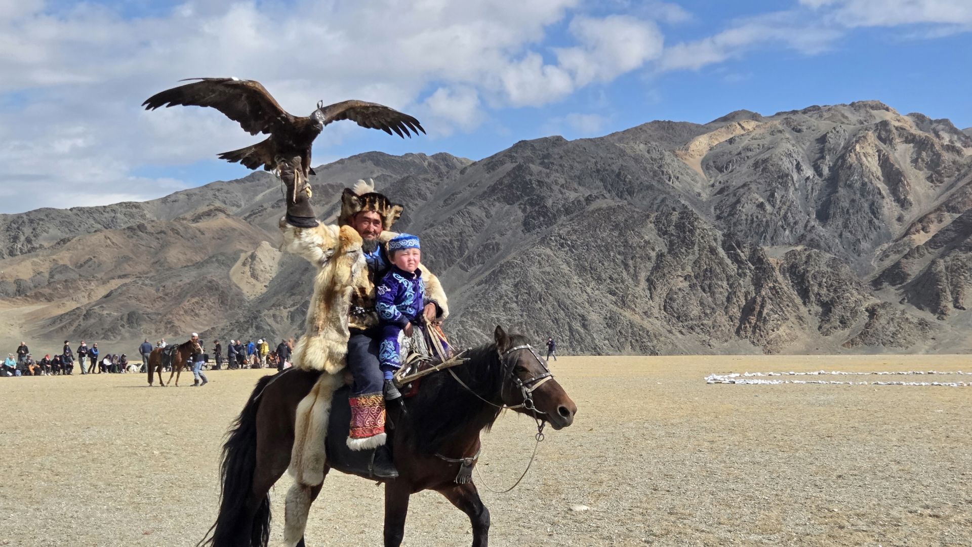 Eagle Hunting, one of the most dramatic and primal relationships between man and beast is alive and well in the remote mountains of centuries, Kazakh men have hunted from horseback with trained golden eagles, the largest and most powerful of raptors. Fox, rabbit and even wolf are hunted for their fur and for the challenge they present, pursued across the snowy mountains and steppes. It reminds us of how close, until recent history, a man was with both nature and animals. This tradition, lost in many parts of the world, is enjoying a resurgence of interest among the Kazakhs and has spread to other ethnic groups who once hunted with raptors but lost the knowledge.